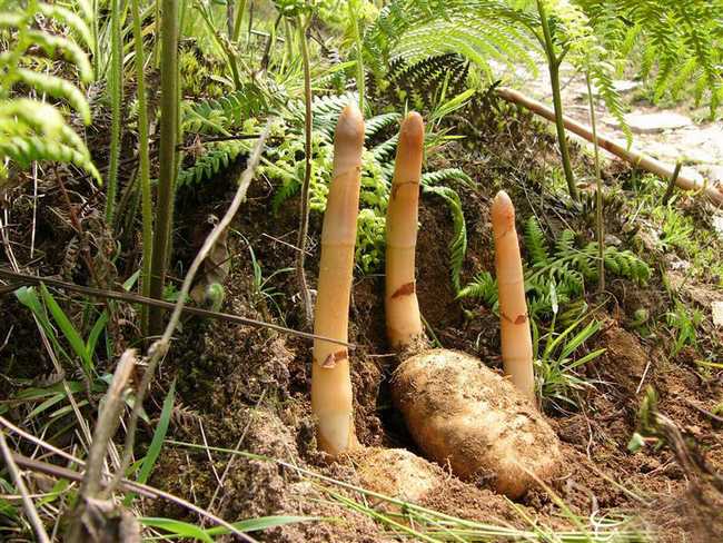 天麻,又名赤箭、离母、鬼督邮、神草、独摇芝、赤箭脂、定风草、合离草、独摇、自动草、水洋芋、明天麻等,为兰科天麻属植物,种加词elata意为“高的”,所以又翻为高赤箭。立冬后至次年清明前采挖(以冬麻为好),是著名的中药材。早在二千多年前就已入药,以云南昭通产者为优。