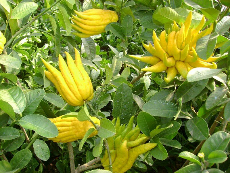 佛手,果实在成熟时各心皮分离,形成细长弯曲的果瓣,状如手指,故名佛手。